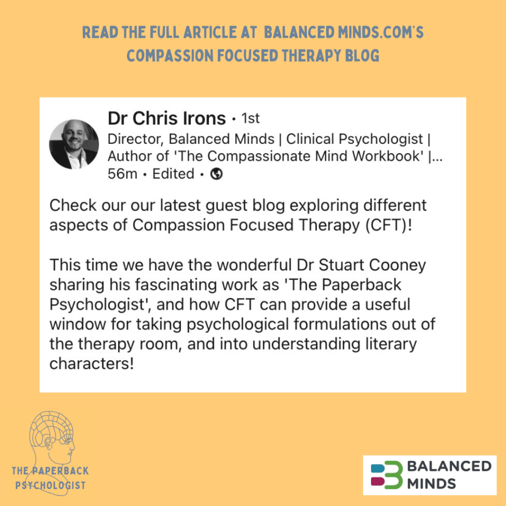 A reflection on reading, Compassion Focused Therapy, and taking psychological formulations out of the therapy room and into understanding literary characters