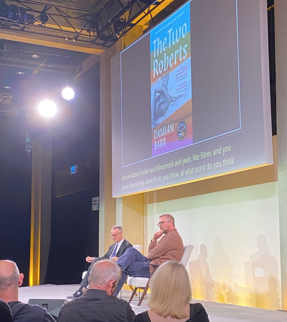 Watching them speak was captivating. It was clear that Andrew O’Hagan was invested and engaged in The Two Roberts, with his questions thoughtful, illuminating and insightful. It’s fitting that Andrew is Ayrshire born, just like the novel’s eponymous two Roberts. Damian spoke lovingly about Bobby MacBryde and Robert Colquhoun, who’s story he has meticulously crafted from glimpses of the real-life artists and lovers from archives, letters and memories. From what I understand, the story is set in the 30’s and 40s in Ayrshire, Glasgow and beyond. We heard of their careers as artists and the secrecy and challenges that their love faced in the early to mid 20th Century. It was touching to see the connection and commitment Damian has to their story, working with their families as part of this process and his hopes for work beyond the publication of the book to bring recognition to their art and lives that sadly wasn’t afforded to them in their lifetimes.