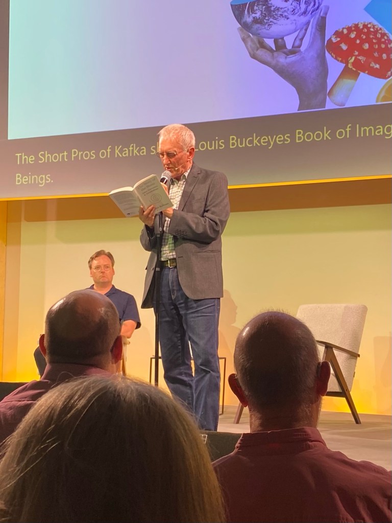 It’s paradoxical that @thebookerprizes winning author (for his 1994 novel, How Late it was, How Late), who has been lauded as “the greatest British novelist of our time” by the Sunday Herald, finds his recent works not published in the UK and older works falling out of print. It’s a shame that despite such accolades his work is not more widely read and real barriers are in place that prevent younger audiences finding his work. This is something that I will change for myself, with my pile of James Kelman books growing on the shelf. I’m eager to read more and seeing him today has only reinforced to me James Kelman’s importance within Scottish literature and beyond.