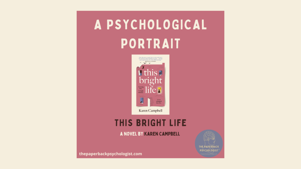 This Bright Life is the latest novel from Scottish author Karen Campbell. The Saltire Awards 2025 shortlisted novel was published in 2025 by Canongate Books (with the paperback out now). This is my second Karen Campbell book, with the excellent Paper Cup being the focus of a psychological portrait a few years ago (Paper Cup, Karen Campbell – A Psychological Formulation #10 – The Paperback Psychologist). In my opinion, This Bright Life surpasses Paper Cup. Across it’s pages we follow the lives of Gerard, Margaret and Claire, three characters from different backgrounds and at very different stages in life. All of their lives are changed one afternoon as Gerard, aged 12 years old, desperate for food and nappies for his baby sister, attempts to steal Margaret’s purse. Claire, a bystander then steps in to help Margaret. Throughout the course of the novel, we gain an insight into each of their lives, with each character drawing us in. We are thrust into their plights and Campbell’s writing elicits strong feelings of genuine care and concern for each character.